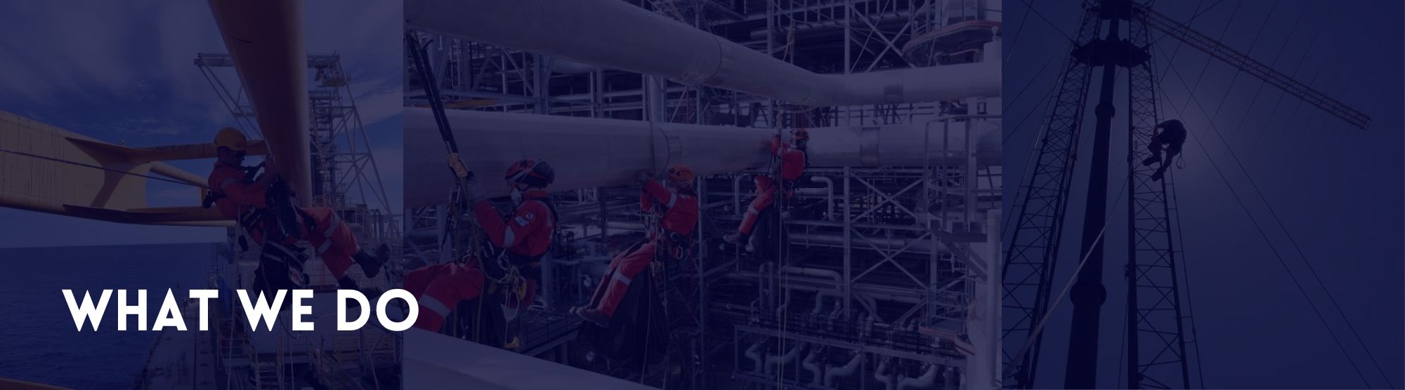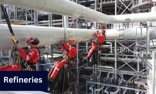 The Rope Access is used in the Oil and Gas Rigs, FPSO's, FSO's, Drill Ships Drill Platforms, Refining Sector, Refineries, Gas Plants, Construction of Bridges, High Rise Building Maintenance, Power generation sector, Wind Turbine Maintenance & repairs as well as the Telecoms Industry sector